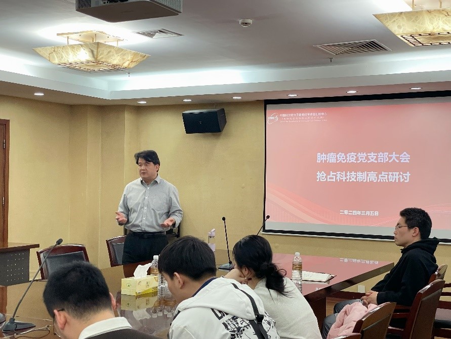 緊扣時代脈搏,碰撞思維火花。腫瘤免疫黨支部與核糖核酸功能與應用黨總支在深入學習貫徹院工作會議精神的基礎上,謀劃開展“一路生花·向未來——科技創新的多元透視”科研大討論活動,邀請工業界、投資界和學術界的優秀代表們從多元角度共同探討科技創新范式,為廣大黨員在“搶占科技制高點”背景下啟迪智慧,開辟思路。蛋白質功能與調控黨支部將“學術沙龍”搬進討論課堂,為黨員“解渴”充電,迸發思維“新火花”,以黨建科研融合的生動實踐為搶占科技制高點注入活力。