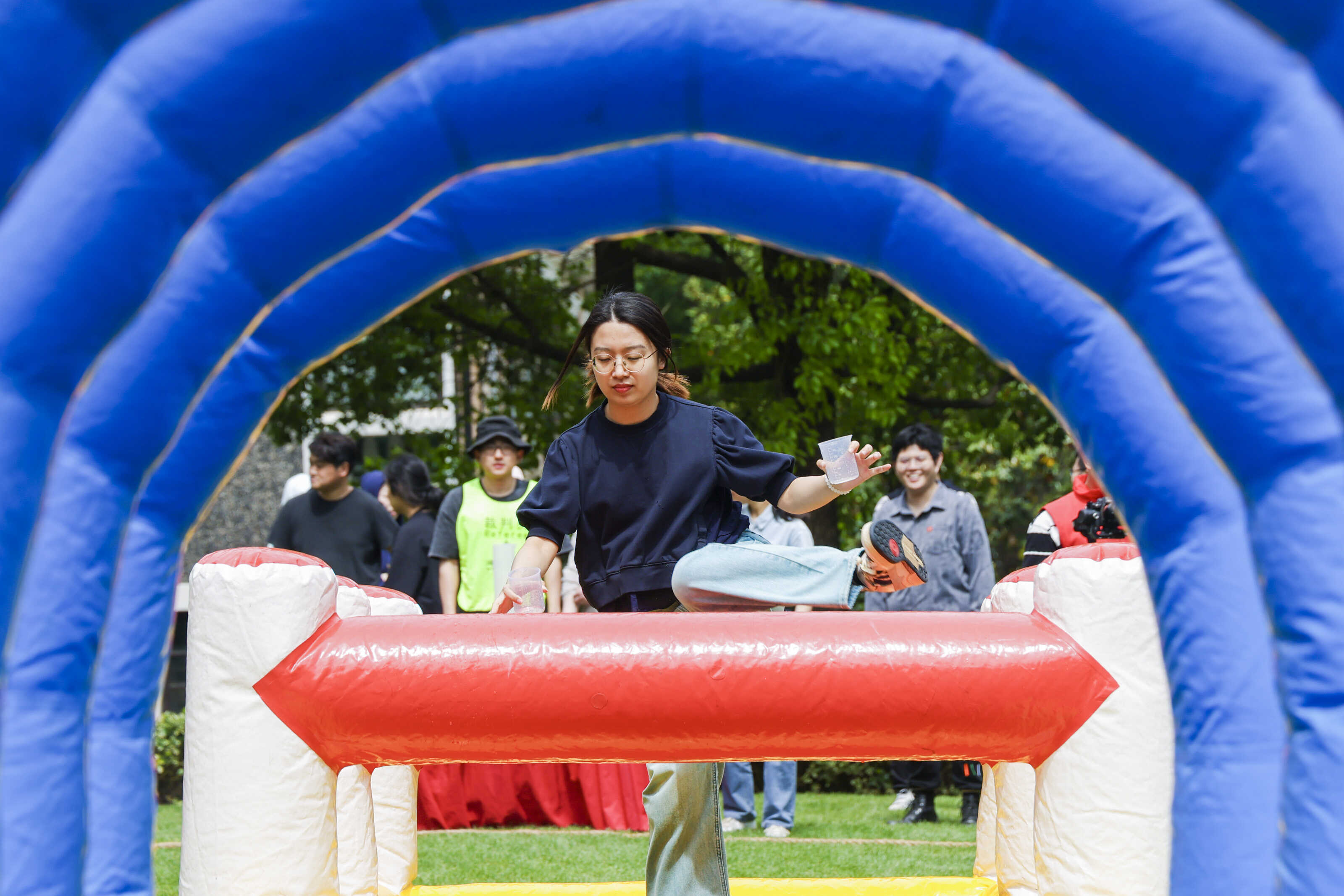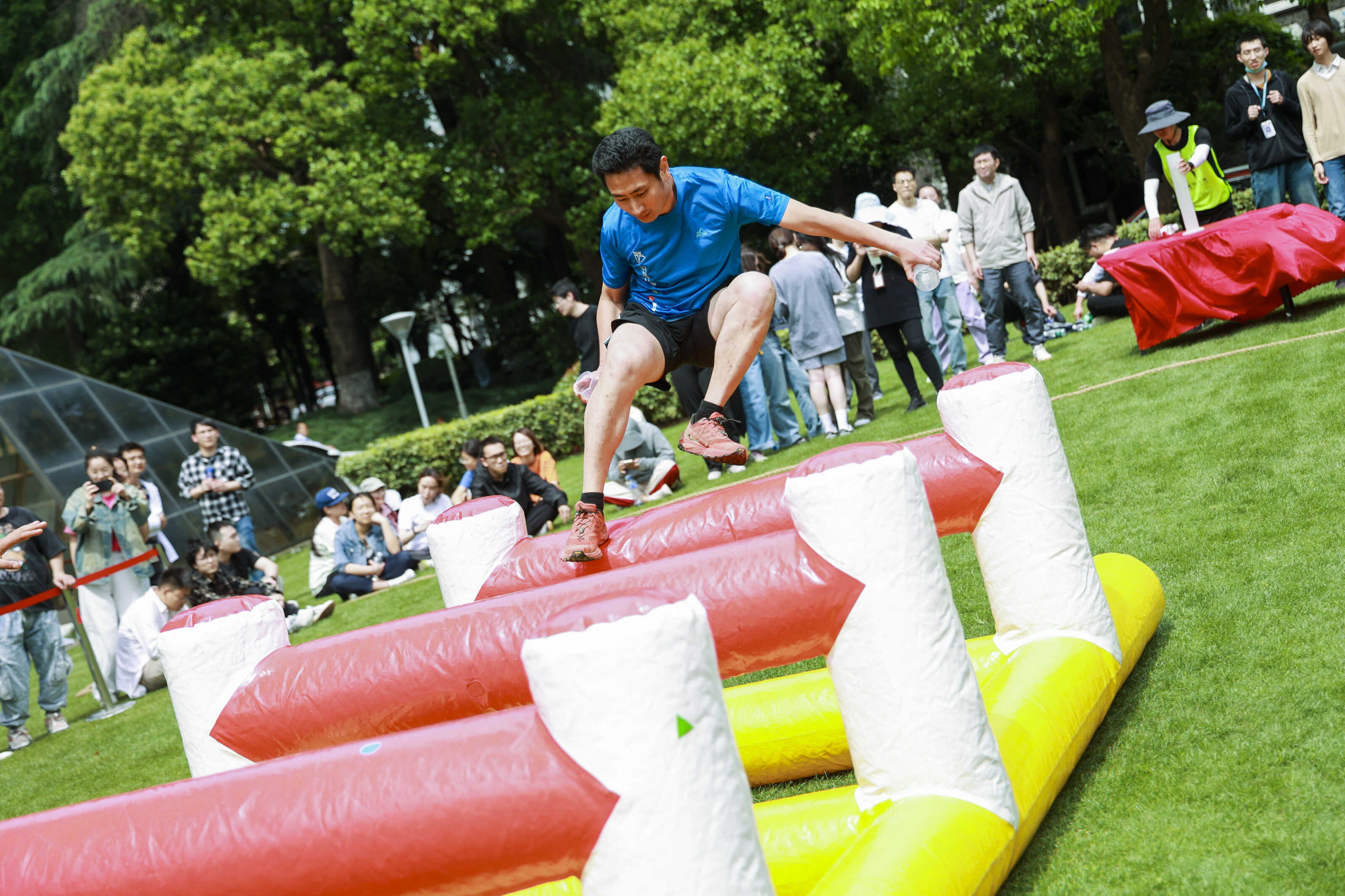 大草坪上,隊員們個個摩拳擦掌、躍躍欲試。在百人熱身活力操后比賽正式開始。拔河比賽按抽簽對陣一局定勝負,歷經初賽、1/4決賽、半決賽、決賽,獲勝隊一路過關斬將,現場加油助威、吶喊歡呼聲不絕于耳。“一二一、左右左……”一隊隊“龍舟”隊員齊喊著口號奔向終點,團結一致、整齊劃一的步伐是旱地龍舟賽的獲勝關鍵,雖偶爾摔倒,但更有勝利的歡笑。捧起熟悉的燒杯,實驗達人們秒變運動健將,有的穩步前進、有的飛身跳躍,各顯神通翻越障礙,接力取水的終點擠滿焦急等待結果的隊員們。
