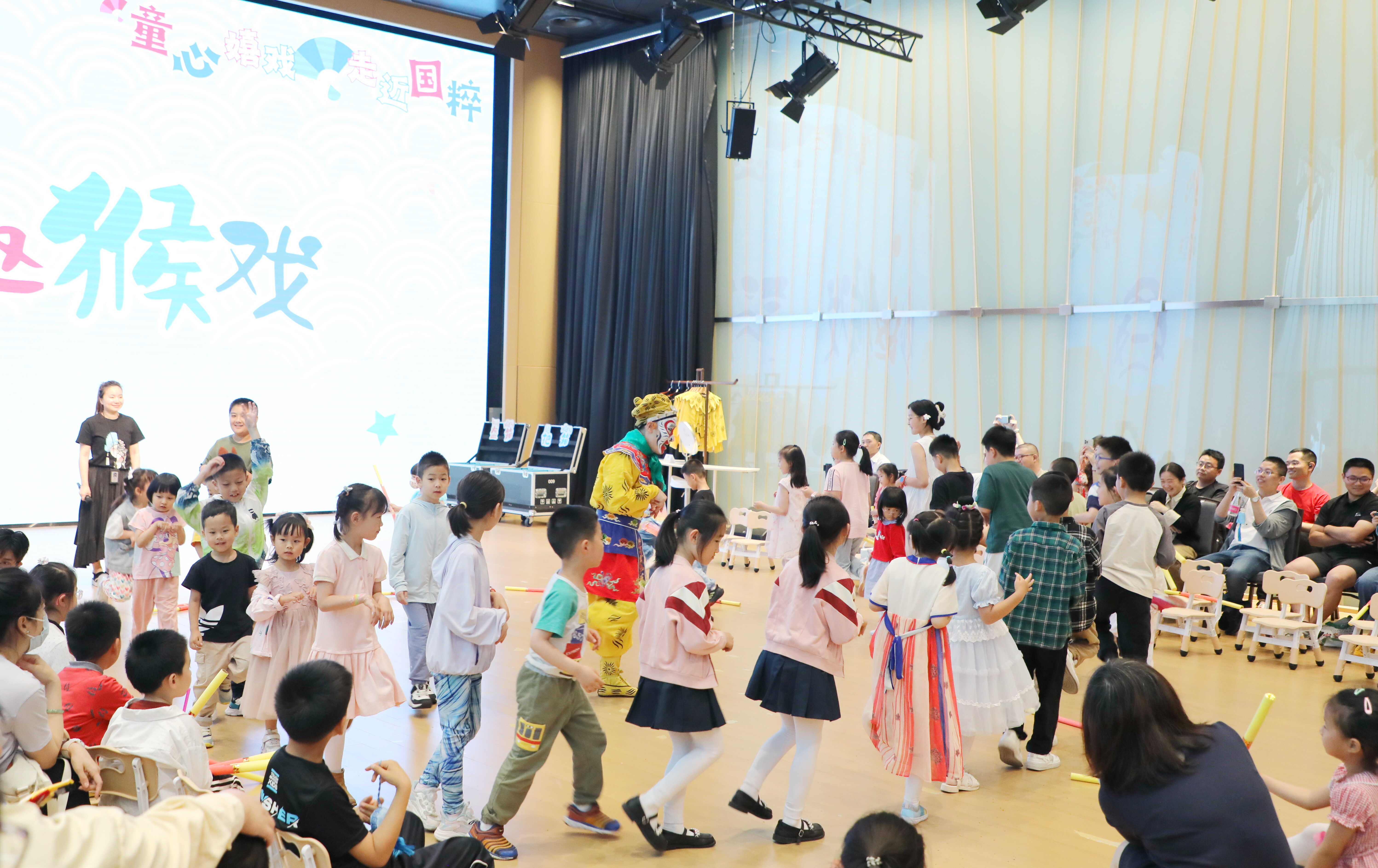 活動特別邀請國家二級演員婁云嘯和上海昆劇團優秀青年演員譚許亞與小朋友們一同打開孫悟空的“戲曲百寶箱”,現場觀看美猴王勾臉變身,學習不同年代的孫行者專屬“私服”的變化,了解角色背后戲曲的發展脈絡。劇院里,小朋友們手持金箍棒一個個化身為傳統戲劇表演的小小鑒賞家,欣賞妙趣猴戲的同時,還與齊天大圣一起打把勢,現場“尋妖”“捉妖”,開懷大笑。在隨后的國潮手作環節,科學家父母們與小朋友們一起制作絹人版迷你孫悟空,穿針引線,將戲服一件件拼貼上身,在非遺技藝的學習中,感受戲曲藝術的魅力,享受愉快的親子時光。