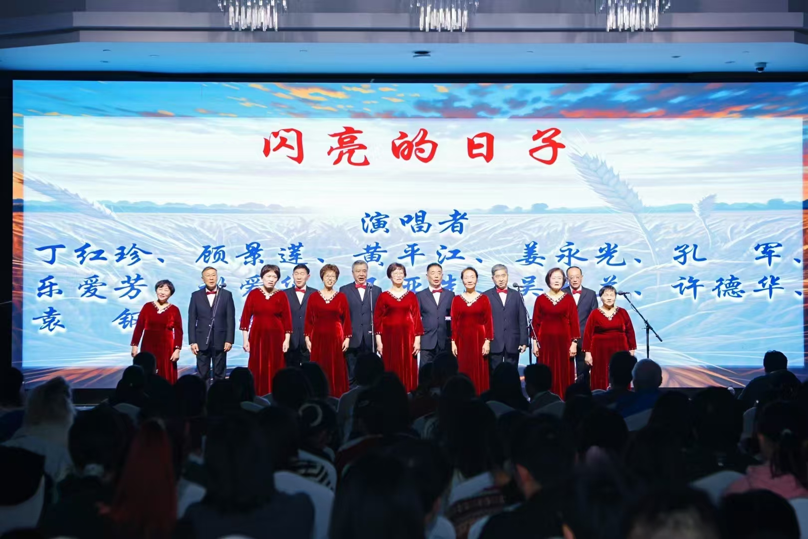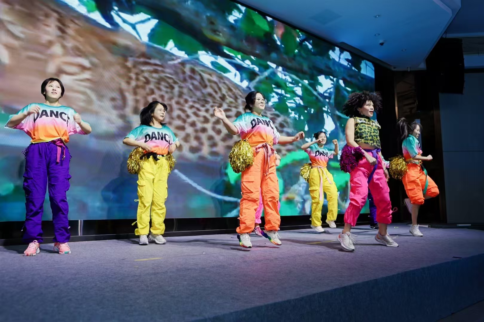 “閃亮的日子” 篇章洋溢著溫馨與歡樂(lè)。籃球操《本草綱目辣不辣》動(dòng)感十足,表演者們活力迸發(fā),點(diǎn)燃了現(xiàn)場(chǎng)的熱烈氣氛。退休職工代表帶來(lái)的小組唱《閃亮的日子》,歌聲悠揚(yáng)婉轉(zhuǎn),仿佛帶領(lǐng)大家回溯那些美好的舊時(shí)光。中心四位PI組成的 “老男孩組合” 驚喜現(xiàn)身,他們共同演唱《光輝歲月》《直到世界盡頭》。熟悉的旋律響起,激昂的歌聲中飽含著對(duì)往昔奮斗歲月的深情回顧,以及對(duì)未來(lái)的堅(jiān)定信念,引發(fā)了全場(chǎng)的強(qiáng)烈共鳴,將現(xiàn)場(chǎng)氣氛推向高潮。抽獎(jiǎng)環(huán)節(jié)穿插其中,驚喜連連,歡聲笑語(yǔ)回蕩在整個(gè)大廳,盡顯中心大家庭的溫暖與融洽。