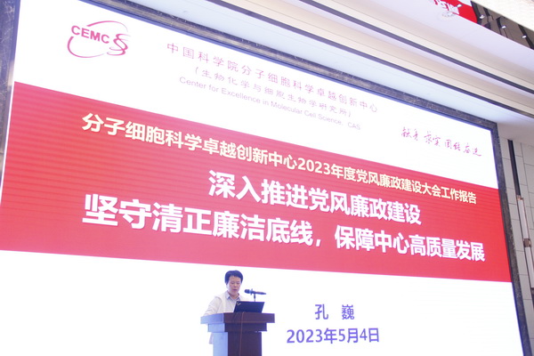 5月4日下午,中國科學(xué)院分子細(xì)胞科學(xué)卓越創(chuàng)新中心召開2023年度黨風(fēng)廉政建設(shè)大會。中心領(lǐng)導(dǎo)班子成員、黨委委員、紀(jì)委委員,研究組長、職能部門負(fù)責(zé)人、技術(shù)平臺主任、黨支部書記及紀(jì)檢委員、“關(guān)鍵崗位”人員和研究生代表等近300人參加了會議。會議由中心黨委書記、副主任倪福弟主持。