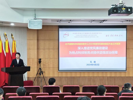 黨委副書記、紀委書記孔巍作《深入推進黨風廉政建設為搶占科技制高點提供堅強政治保障》主題報告,在簡要回顧2023年黨風廉政建設工作的基礎上,圍繞新時代全面從嚴治黨總體要求,學習貫徹習近平總書記重要講話精神、中央紀委三次全會精神以及院2024年度工作會議精神,重溫了《中國共產黨紀律處分條例》修訂要點,部署了中心2024年黨風廉政建設五方面十二項重點工作,并對推進政治監督、配合任期經濟責任審計、發揮監督合力、加強廉潔文化建設四項任務進行了再部署再動員。她強調,要深入學習貫徹黨的二十大精神和二十屆中央紀委三次全會精神,進一步強化搶占科技制高點的使命意識,弘揚“獻身、求實、團結、奮進”精神,推進黨風廉政建設走深走實,持續加強作風學風建設,營造維護風清氣正科研生態,助力中心加快搶占生命科學基礎研究和應用基礎研究領域制高點,為實現高水平科技自立自強和建設科技強國做出應有貢獻。