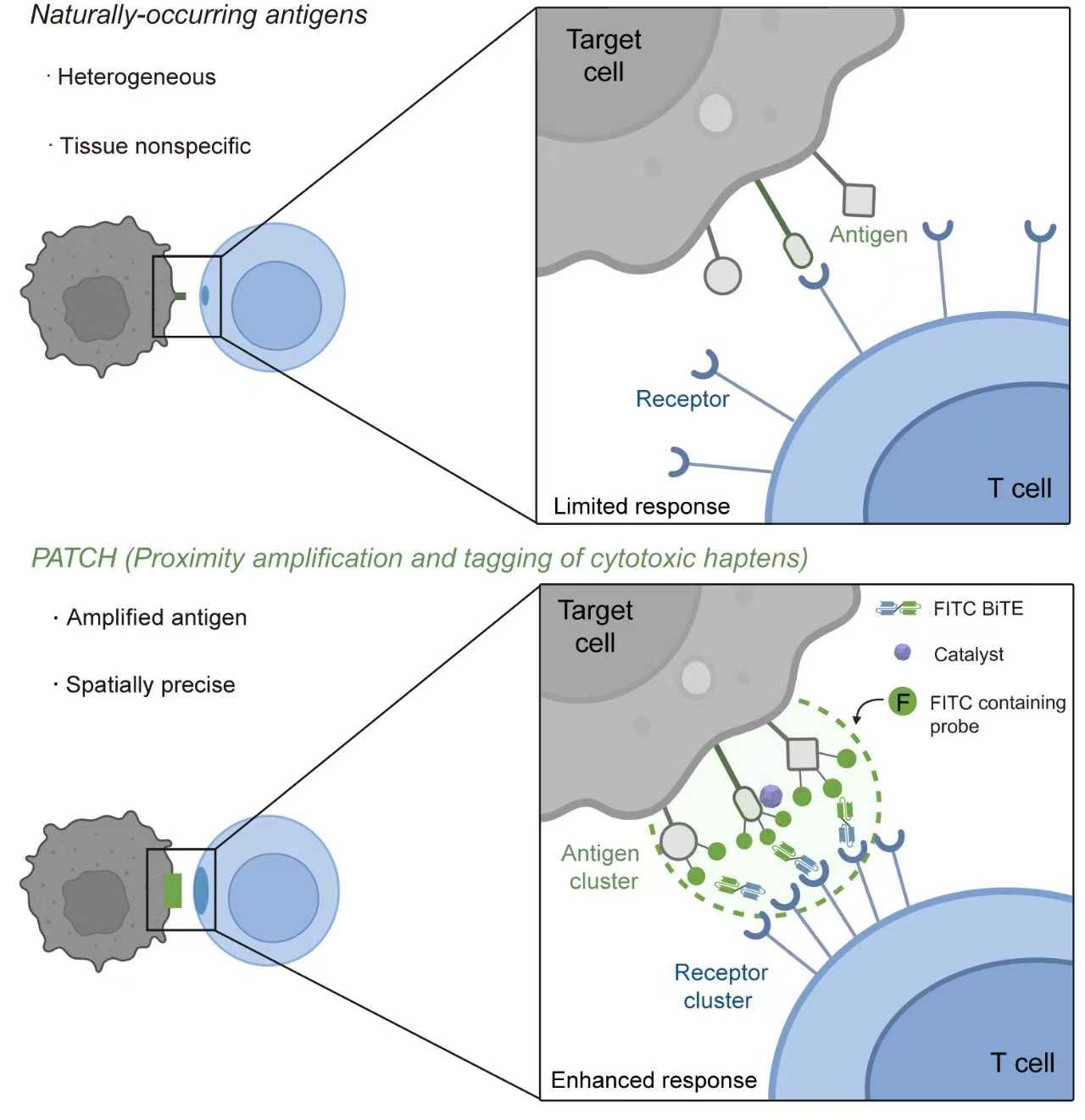 腫瘤免疫治療,特別是那些旨在利用T細胞來識別和清除癌細胞的療法,已成為癌癥治療領域的一大突破。然而,其廣泛應用仍面臨兩大瓶頸:許多腫瘤相關抗原在癌細胞表面的表達密度不足,難以有效激活T細胞;同時,這些抗原也常常在正常組織中有低水平表達,導致治療的特異性差,可能引發脫靶的毒副作用。因此,開發能夠增強抗原信號、并精準靶向腫瘤細胞的新策略至關重要。