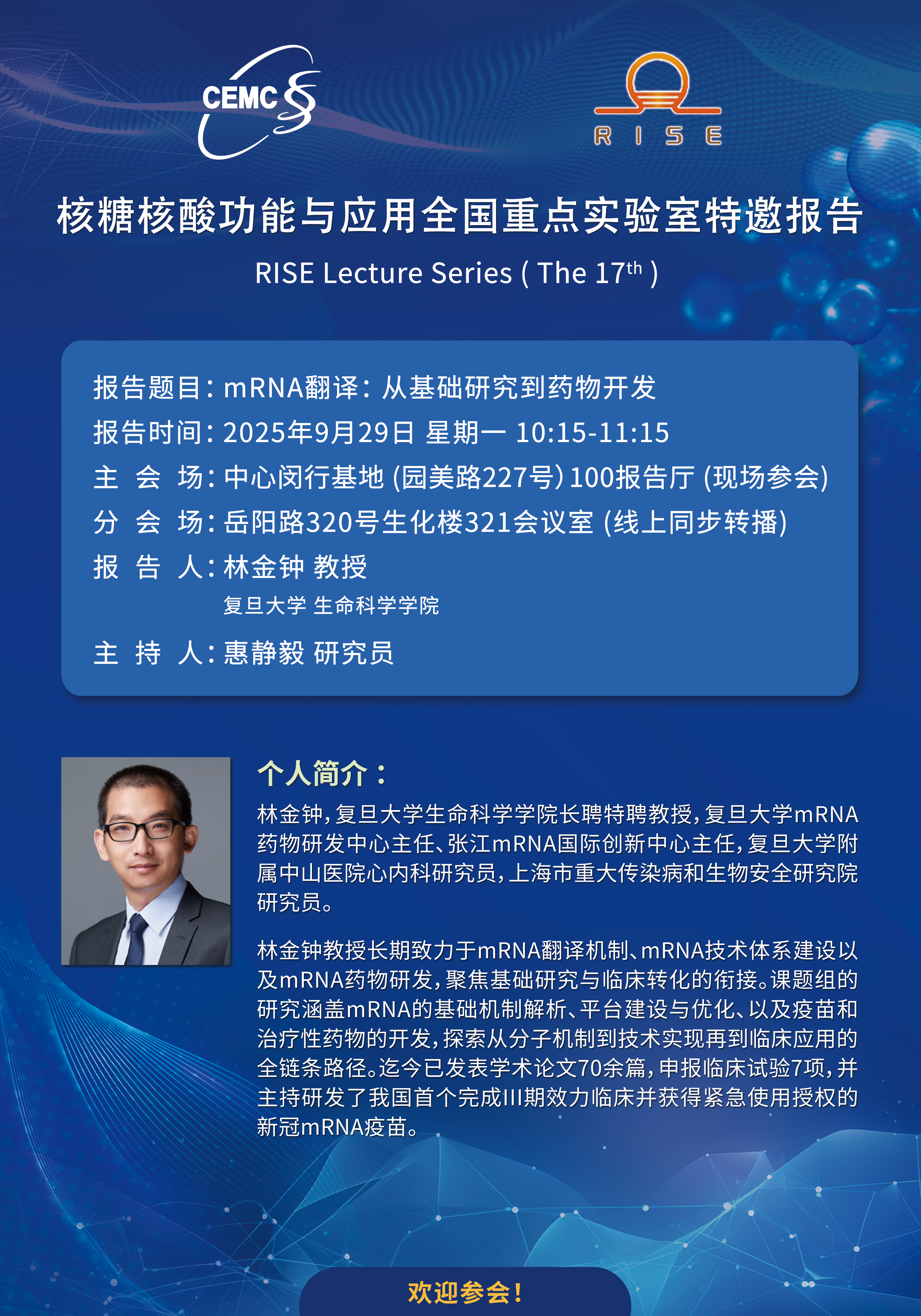 復旦大學?林金鐘?教授:?mRNA翻譯:從基礎研究到藥物開發