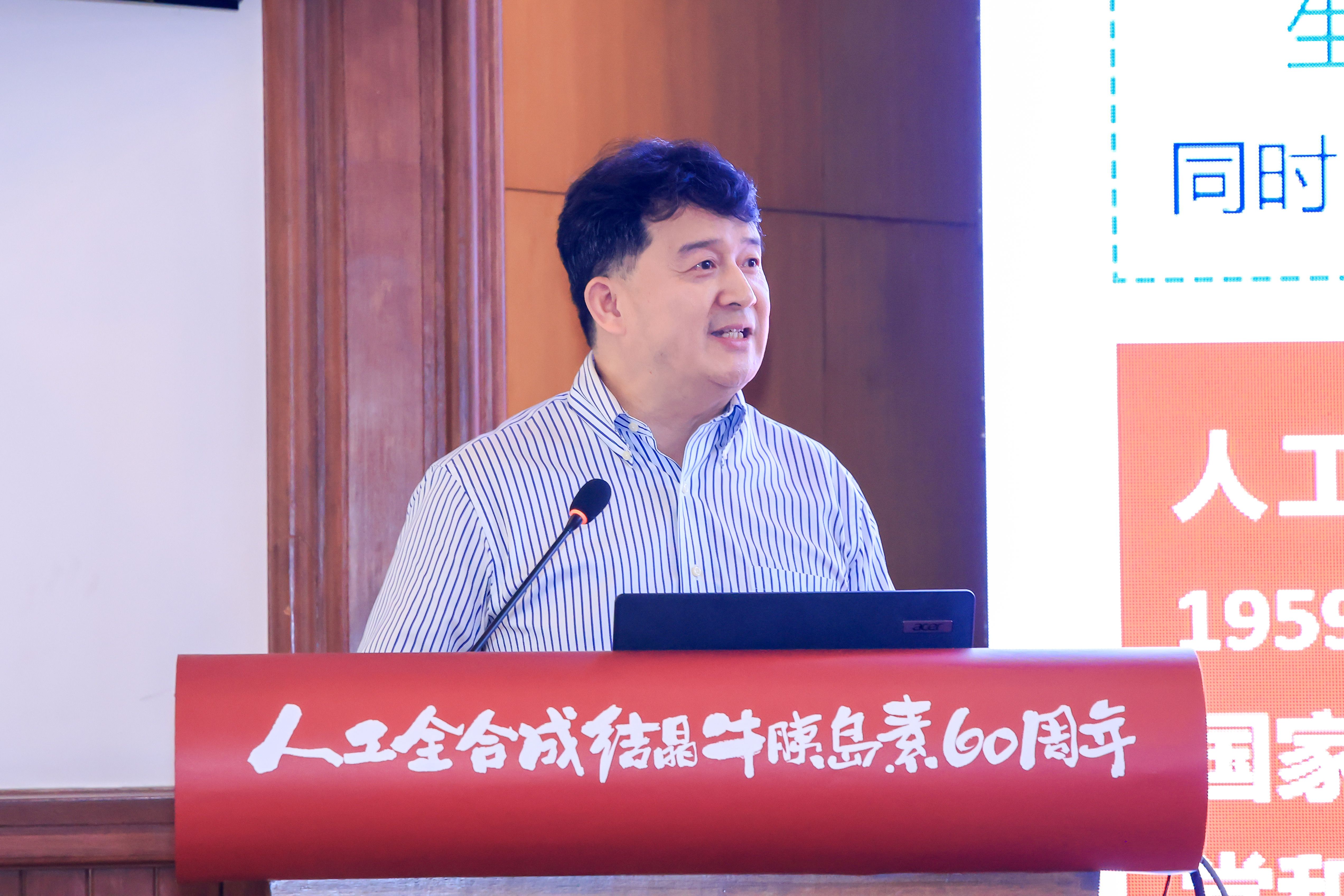 分子細(xì)胞卓越中心主任、黨委負(fù)責(zé)人劉小龍首先作題為《結(jié)晶映甲子、初心照未來(lái)——讓胰島素精神之光照亮新時(shí)代科技創(chuàng)新之路》的報(bào)告,重溫了六十年前老一輩科學(xué)家攜手攻堅(jiān)完成人工全合成結(jié)晶牛胰島素的艱辛歷程,詳細(xì)介紹了中心近年來(lái)持續(xù)開展胰島素相關(guān)科學(xué)研究,在基礎(chǔ)研究、科技成果轉(zhuǎn)化、學(xué)科交流與合作等方面取得的一系列新進(jìn)展。他表示,科技創(chuàng)新之路任重道遠(yuǎn),胰島素精神的火種六十年間在“320大院”薪火相傳,期待未來(lái)與兄弟單位有更多更緊密的合作,在原始創(chuàng)新與關(guān)鍵核心技術(shù)領(lǐng)域?qū)崿F(xiàn)更多“從0到1”的突破。